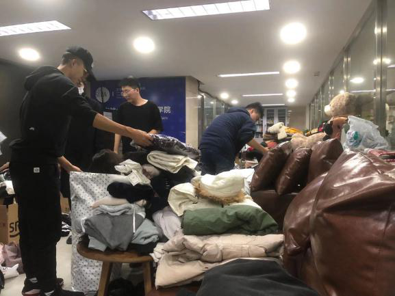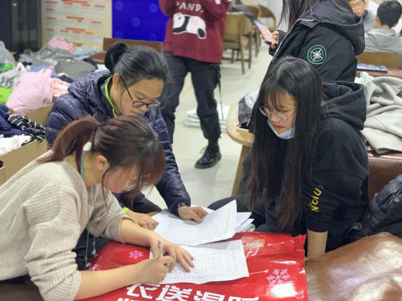 10月30日,冬衣收集活动正式开始,工作人员将贴有活动海报和捐衣登记表的箱子放置于中心校区各个寝室楼下,志愿者们热情宣传,参加捐衣的师生更是络绎不绝。