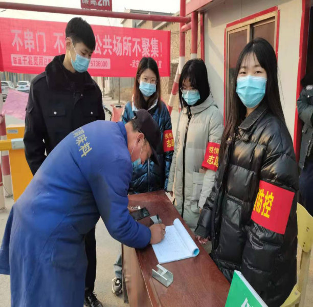 2018级本科生白璐同学在假期期间主动成为一名志愿者,在河北省武安市协助开展疫情防控工作。
