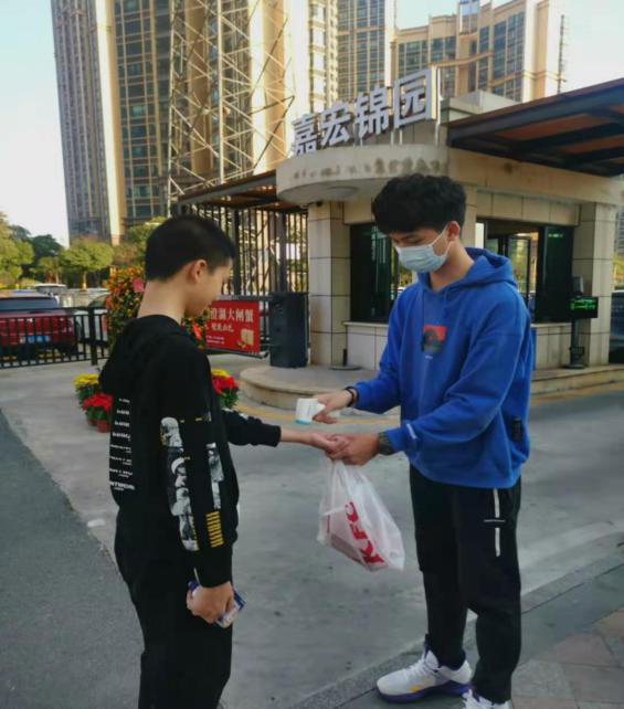 2019级本科生毕成安同学加入了广东省东莞市嘉宏锦园小区抗击疫情的志愿活动。他主要负责搬送物资,帮助隔离的居民们解决日用品问题。此外,他还参与到人员测温、宣传防疫小知识、对居家隔离居民进行线上登记等工作之中。