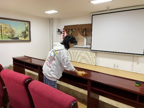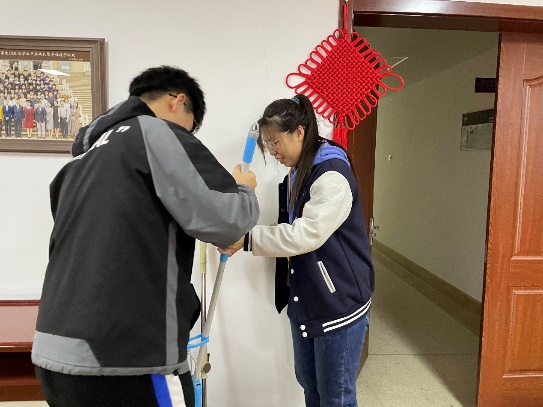 员工们对学院部分公共区域进行清洁、打扫,大家组织有序、分工明确、齐心协力,争取以干净、整洁的环境,崭新的面貌迎接新学期的到来。