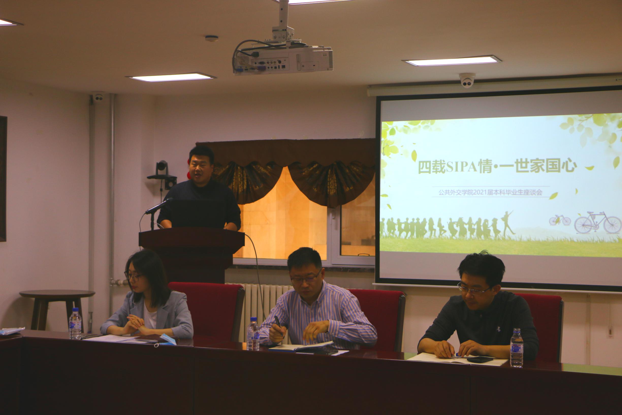 在同学们发言结束后,杨民老师对同学们为学院发展提出的宝贵建议表示感谢,并对毕业同学提出殷切期盼。他表示:“对各位同学在学院课程设置、学分置换上等问题学院会进一步研讨,在制定下新版培养方案中合理吸收同学们的建议和意见,也鼓励同学们在大学毕业后仍然坚持学习,注重学习能力与学习习惯的养成,在与人交往时应学会去反思自己,更好的成长成才。2017级的同学们是学院的名片,希望同学们日后无论走到天南海北,都能够常怀感恩,勇敢前行。在未来既能仰望星空又能脚踏实地,做一个将国际视野、大局意识融会贯通的综合型人才,在实现自己的人生价值的基础上进一步为祖国事业发光发热。”