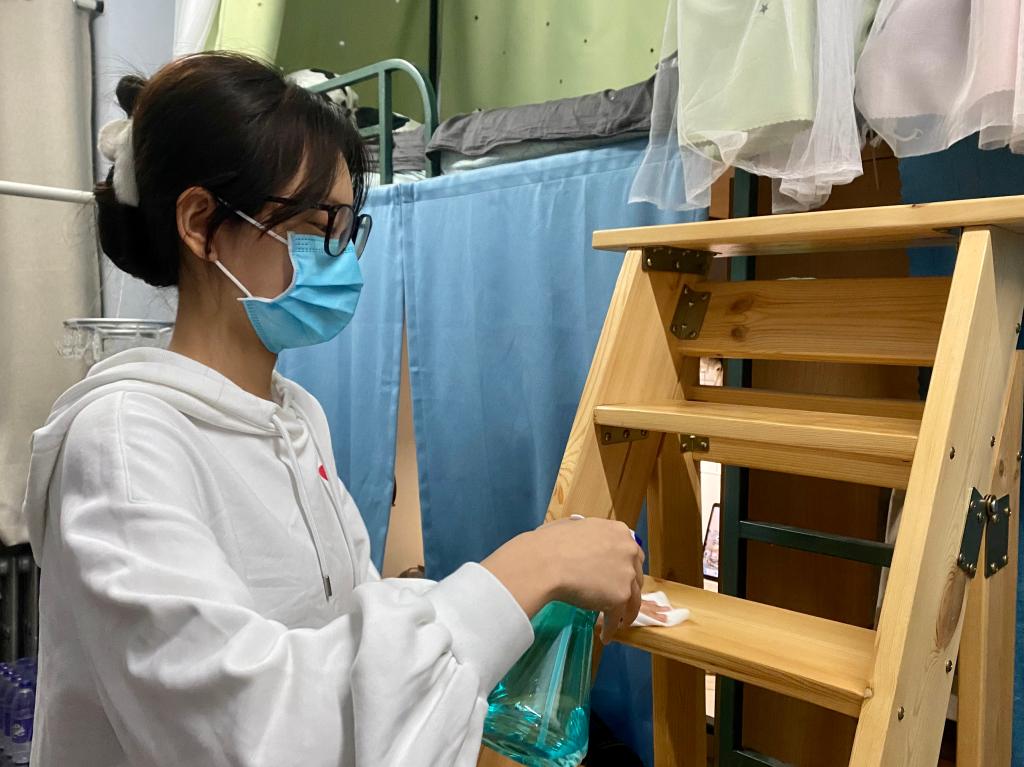 整理内务,收纳桌面,打扫卫生,消毒杀菌……在疫情期间,同学们对寝室的卫生环境格外重视,不仅对寝室每一处角落的灰尘进行了清理,而且也对宿舍可能潜藏的细菌病毒进行了消杀,用双手创造出了温馨舒适、干净卫生的宿舍环境。