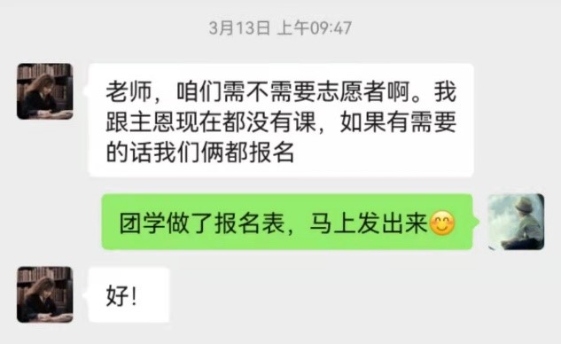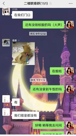 william威廉亚洲官方2020级本科生田园在接受采访时表示:“寝室实行封闭管理以来,我光荣成为一名志愿者,作为南苑九公寓二层的负责人,参与南九的防疫调度工作。每天我的核心任务只有一个——确保南九二层的每一位同学都能按时拿到餐食、物资,顺利完成核酸检测。每次敲门时,寝室内传出的一声声‘辛苦啦姐妹!’就是我最大的快乐和最温暖的鼓励。到了晚上,一天的餐送完之后又开始召集第二天的志愿者......每天都是满满当当却充实有意义的时光。岁月因青春慨然以赴而更加静好,世间因少年挺身向前而更加瑰丽。共盼凛冬散尽,静候春暖花开。非常感谢同学们的理解,我们会努力做得更好的!”