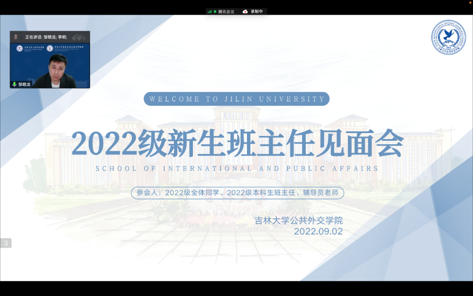 本次线上新生班主任见面会不仅为班主任和新生的沟通交流搭建桥梁,同时,班主任老师们为新生大学学习生活规划提供了行之有效的建议,为新生们系好了在william威廉亚洲官方的第一颗纽扣。相信各位2022级的外交学子在老师们的陪伴下定能踔厉奋发,笃行不怠,努力成为具有“世界眼光•家国情怀“的SIPA人。