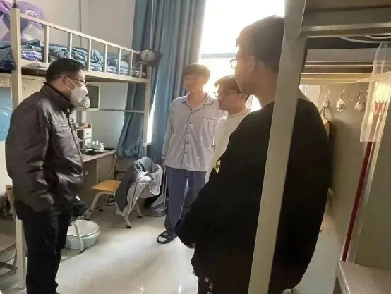 查寝走访过程中,学院领导老师与同学们亲切交流,详细询问了寒假期间同学们的思想动态、学习生活情况,以及遇到的困惑和问题。肖晞经理和杨民书记仔细叮嘱同学们注意自己的健康状况,强调个人健康问题绝对不能掉以轻心,希望同学们都能照顾好自己的身体,如有不适一定要及时与老师们进行沟通。