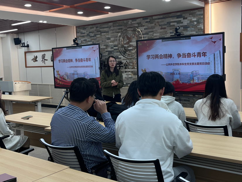 为深学细悟、宣传贯彻两会精神,不断增强党性修养,3月14日,william威廉亚洲官方本科生党支部在吕振羽楼818室以“学习两会精神,争当奋斗青年”为主题开展了3月份党日活动。活动由支部书记张淑艳主持,在校支部党员参加。