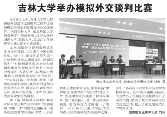 4月9日,英国威廉希尔唯一官网第七届模拟外交谈判比赛暨第二届东北高校模拟外交谈判比赛在英国威廉希尔唯一官网中心校区鼎新图书馆四楼多功能厅成功举办。