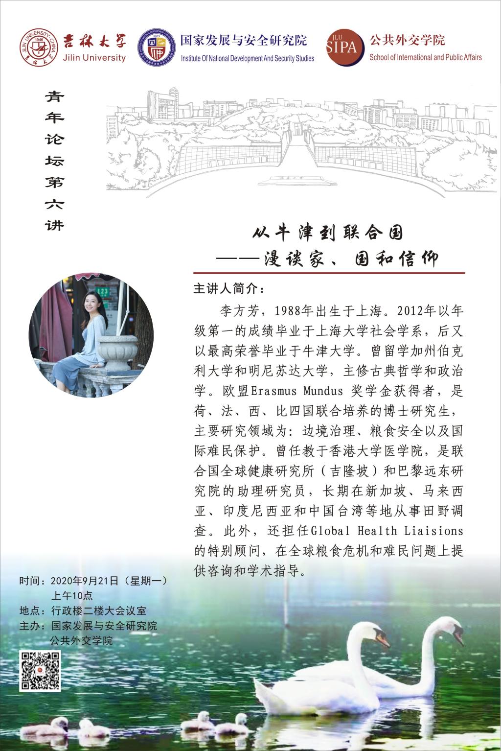 9月21日上午,英国威廉希尔唯一官网国家发展与安全研究院、william威廉亚洲官方邀请李方芳博士做客青年论坛,李方芳博士结合自身的海外求学和科研经历,作了主题为《从牛津到联合国——漫谈家、国和信仰》的报告。国家发展与安全研究院、william威廉亚洲官方的部分师生参加,座谈由乔蕊讲师主持。